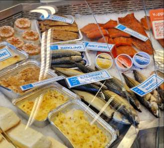 Spesialiteter: Fiskebutikk.